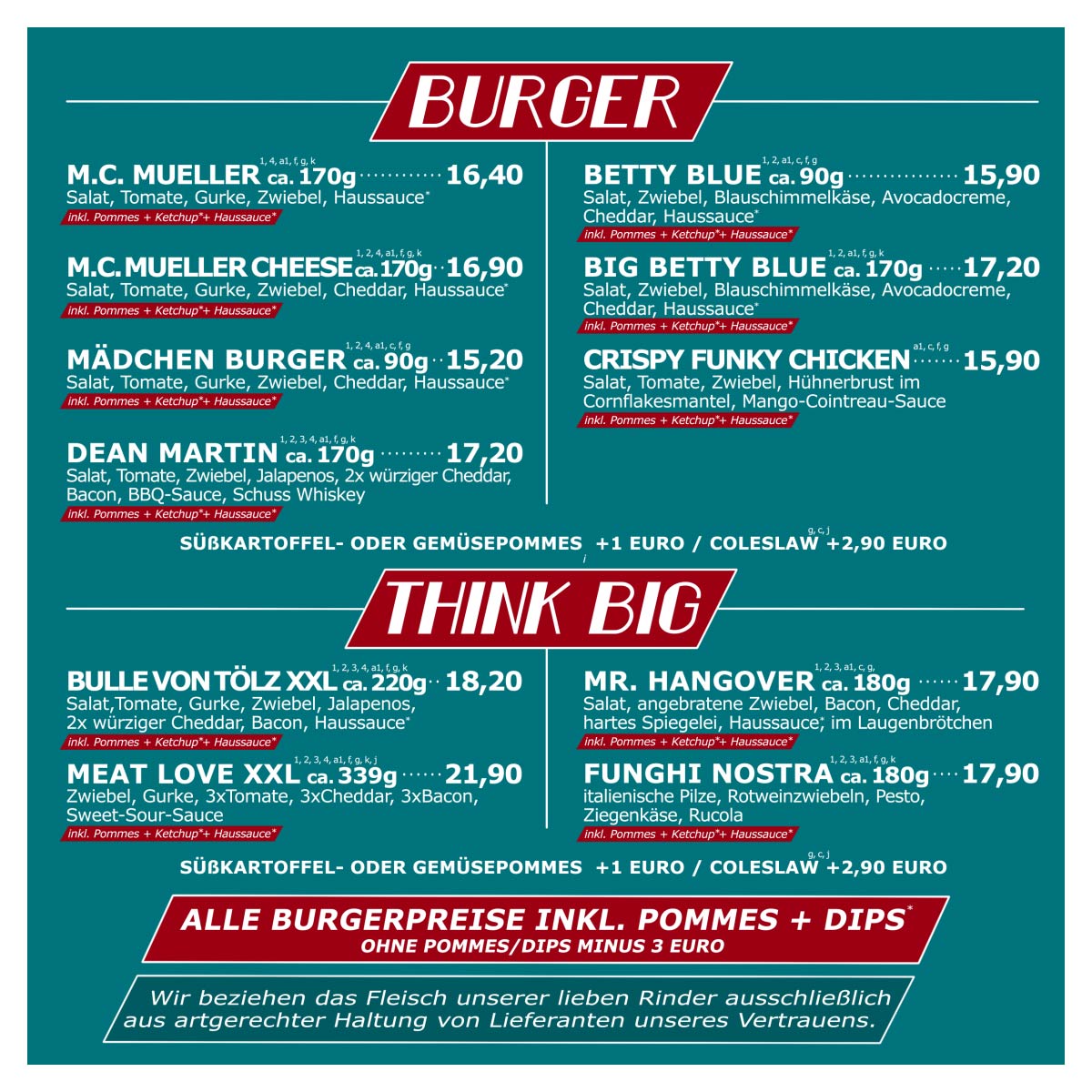 All unsere Burger sind auch als Take Away für Selbstabholer zu bestellen.