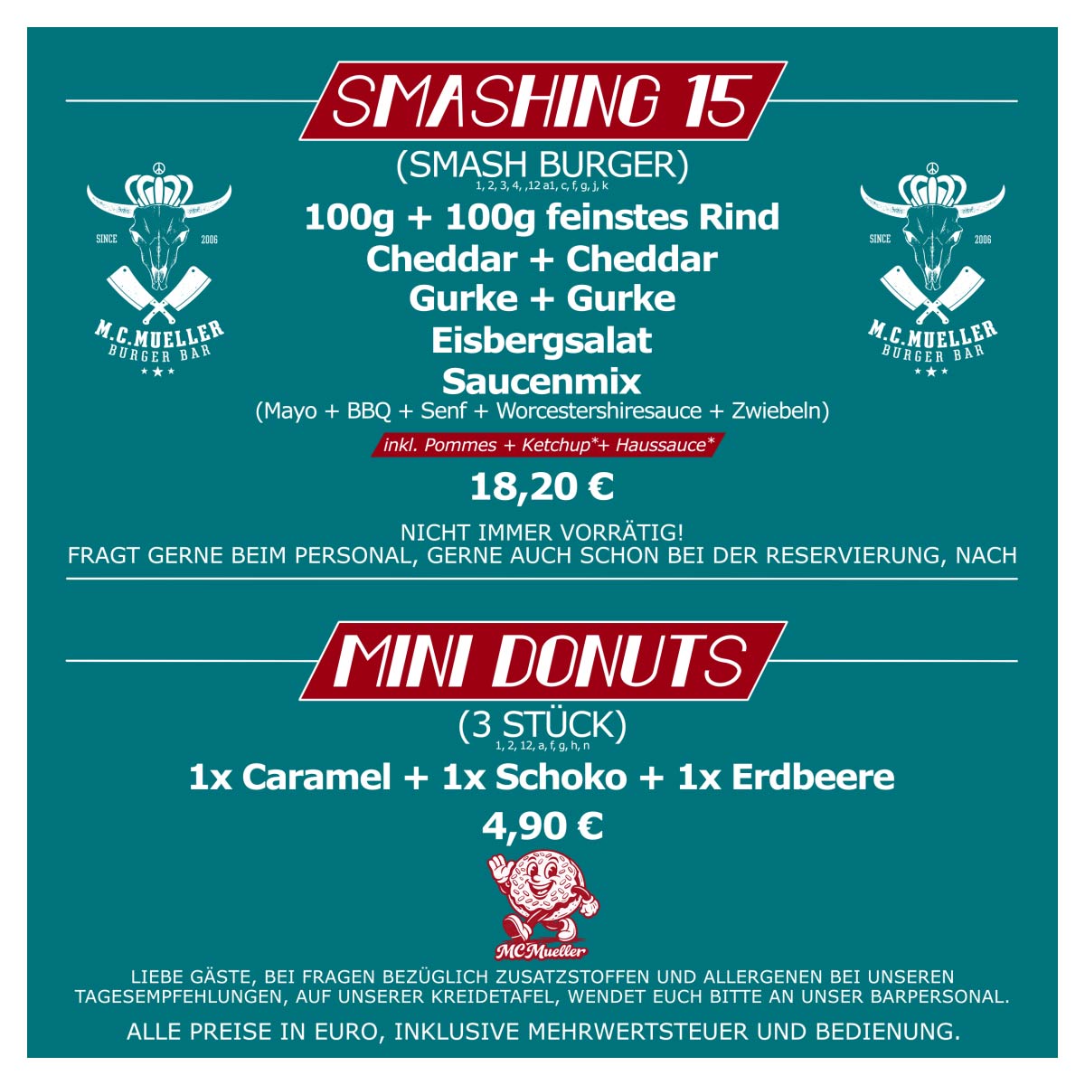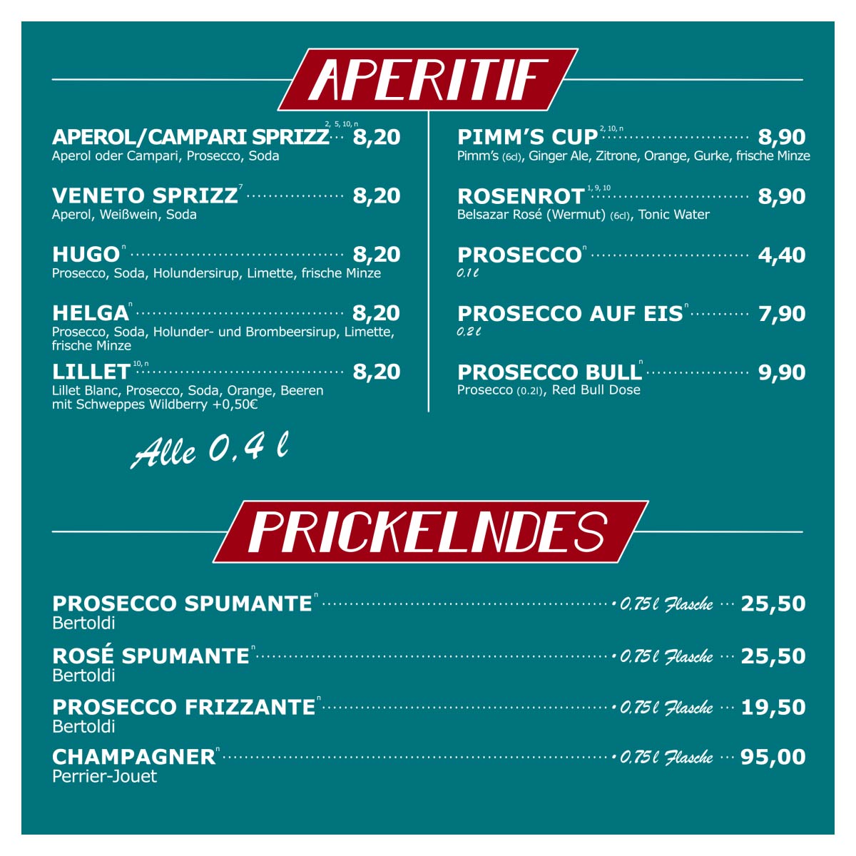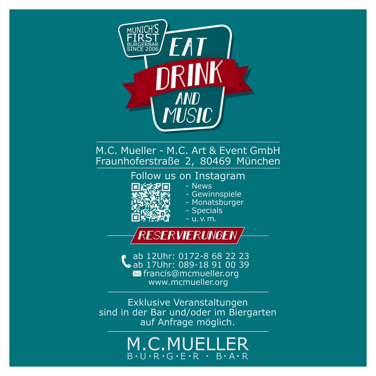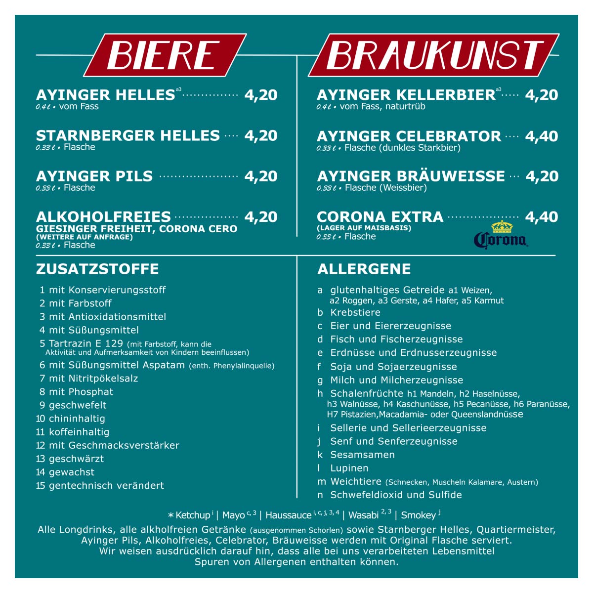 (außer bei Reservierungen ab 50 Personen –