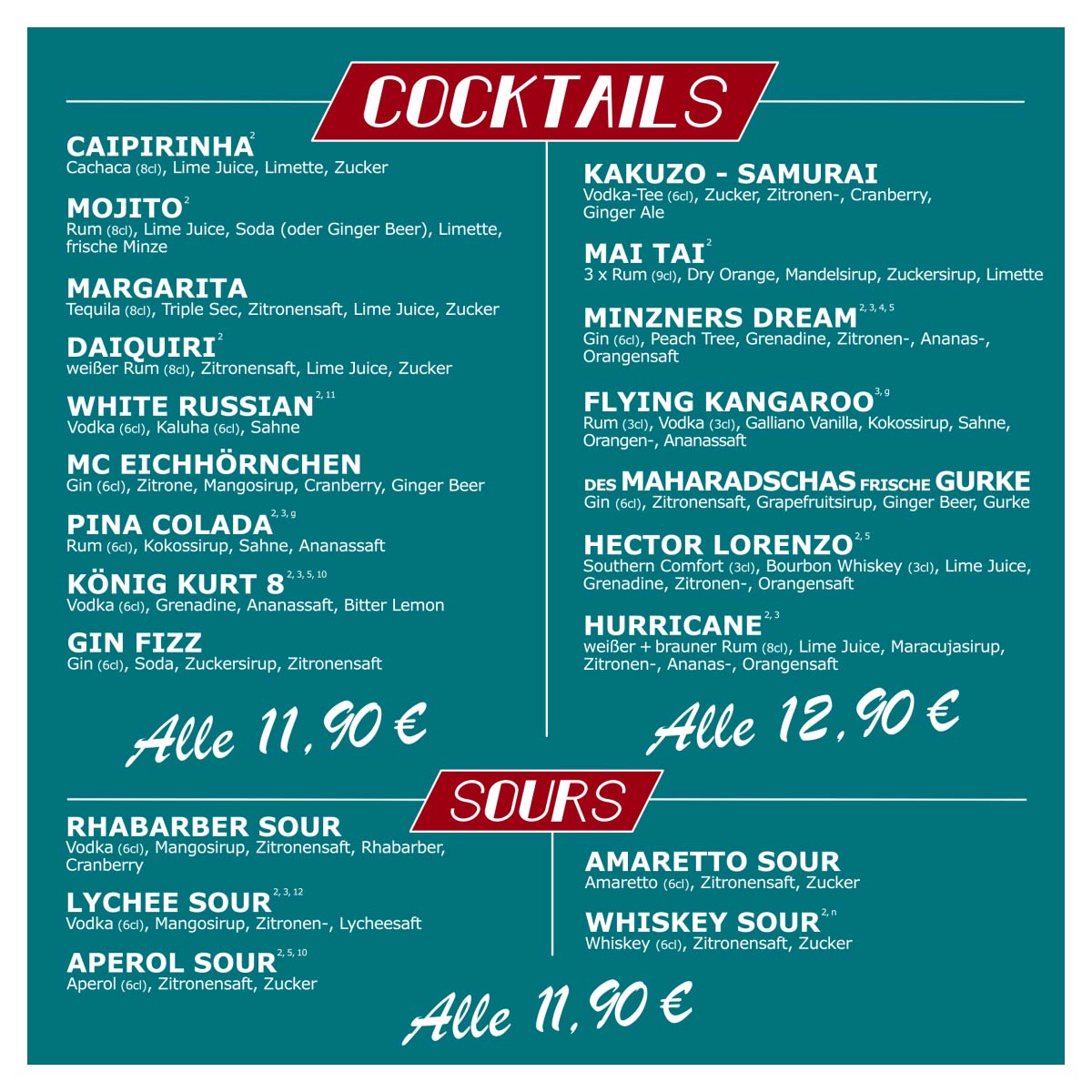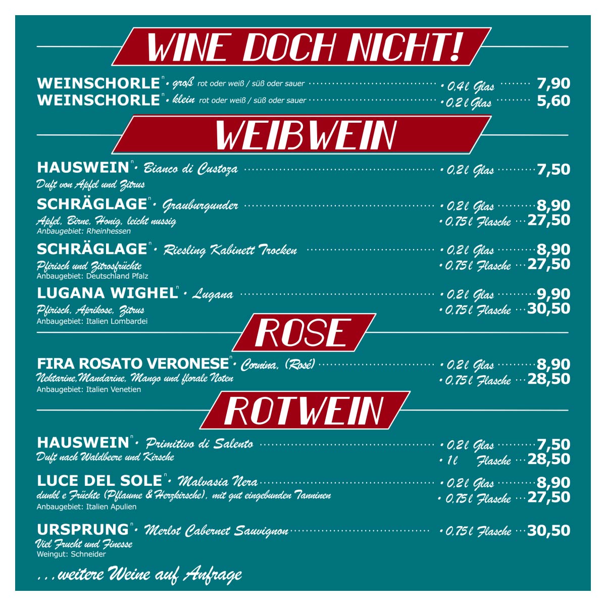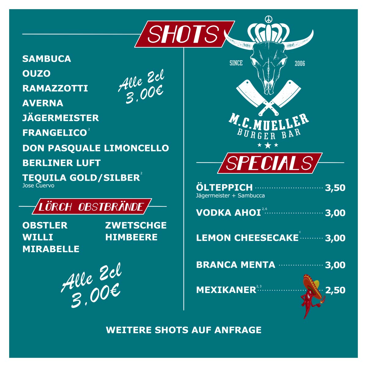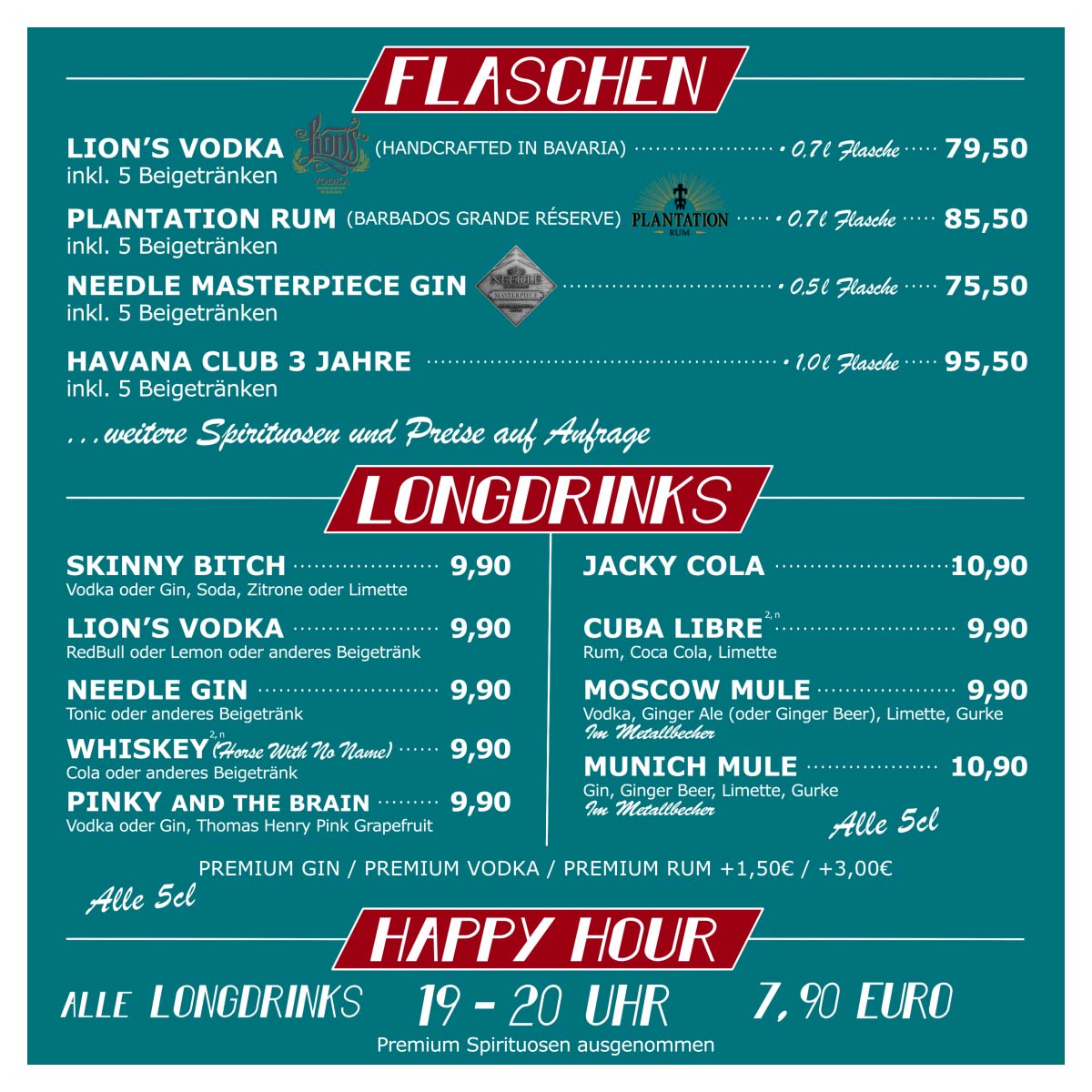 (außer bei Reservierungen ab 50 Personen –